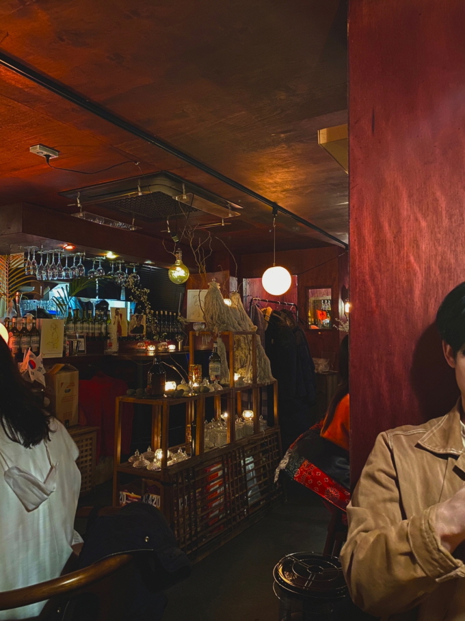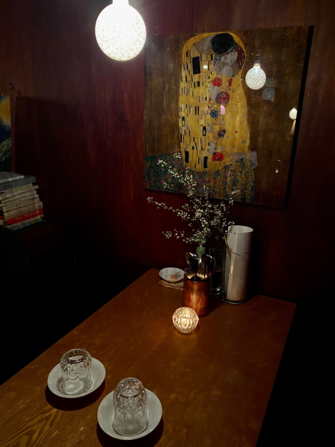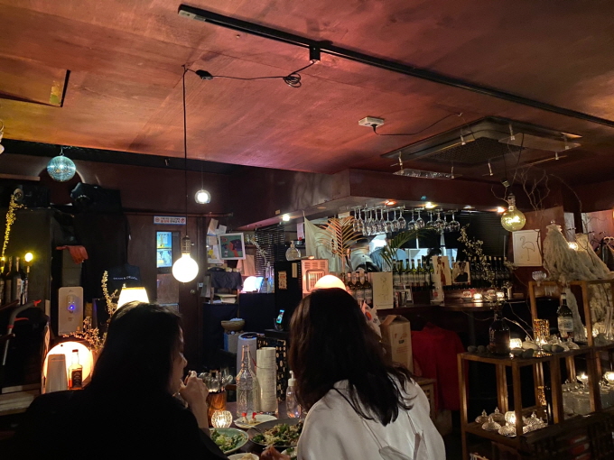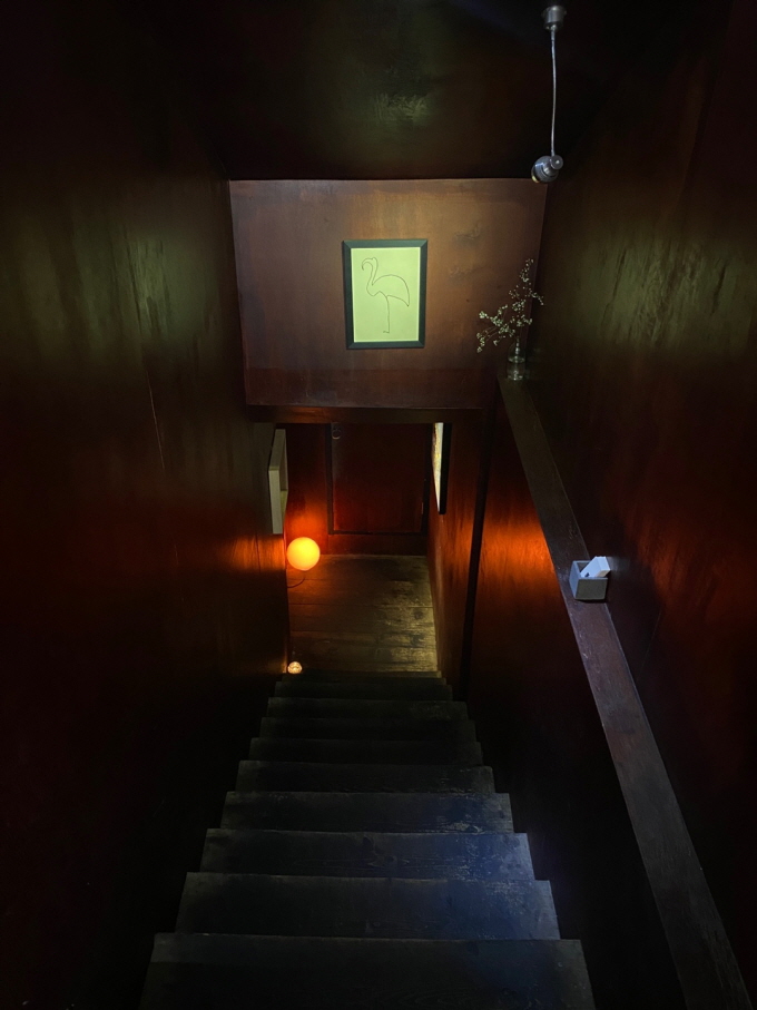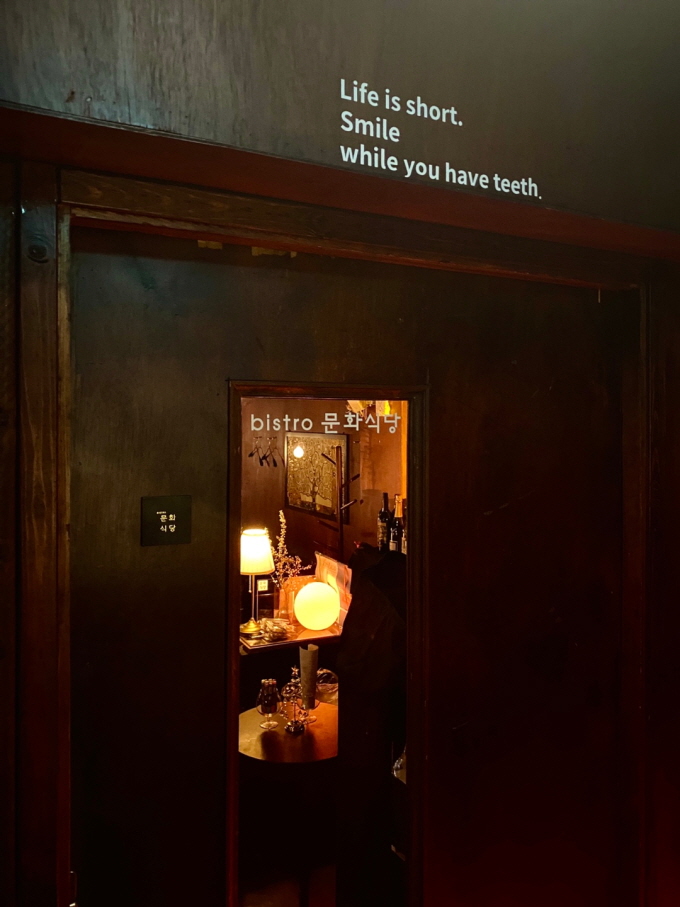 우리가 간 시각은 점심시간, 거의 정오였다. 하지만 비스트로 문화식당의 나무 문을 열고 계단 밑으로 내려가다보면 지금이 낮인지 밤인지 알 수 없게 된다. 그냥 그 분위기 속으로 빨려 들어가는 느낌.