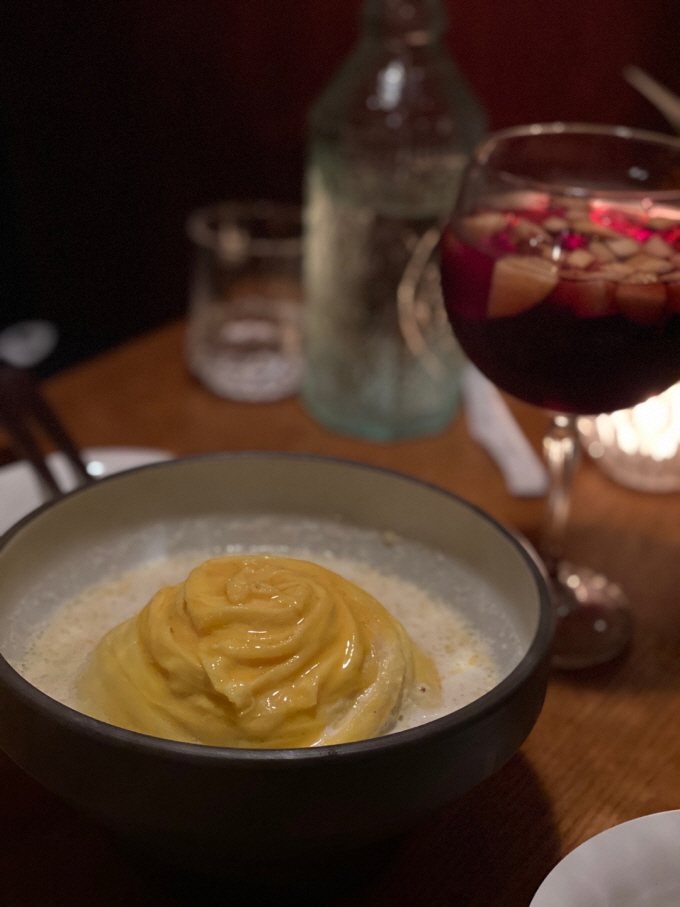귀여웠던 디저트까지 완-벽. 중간에 심지어 접시 들고오시다가 눈사람 하나가 넘어져서 다시 들고 가셔서 세우시고는 다시 가져다 주셨다는 훈훈한 뒷이야기....ㅎㅎ 눈사람의 정체는 치즈였던 듯! 보기만 했을 땐 샤베튼가 생크림인가 했는데 맛이 꾸덕했다. 우리가 갔을 때도 두,세 테이블 정도가 이미 차있었는데 나올 때는 바 자리까지 거의 꽉 차 있었던 문화식당. 성신여대 근처에서 분위기도 좋고 음식도 맛있는 곳을 찾으신다면, 이 곳을 강력하게 추천드린다.
