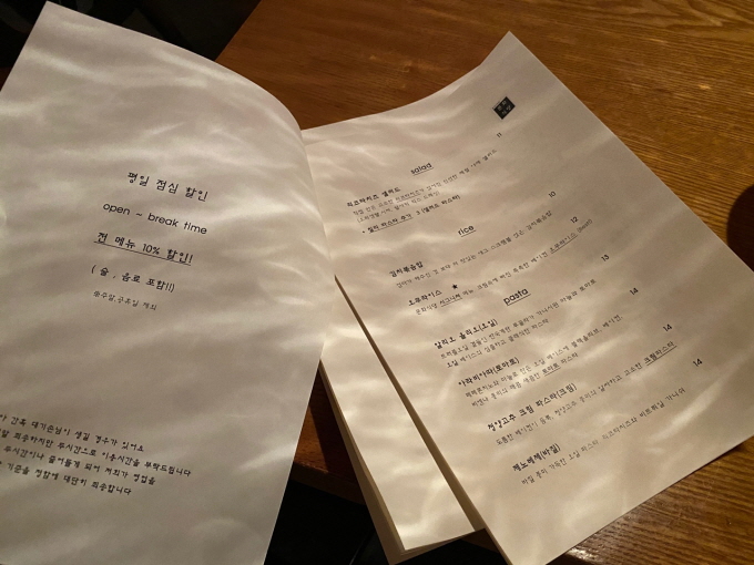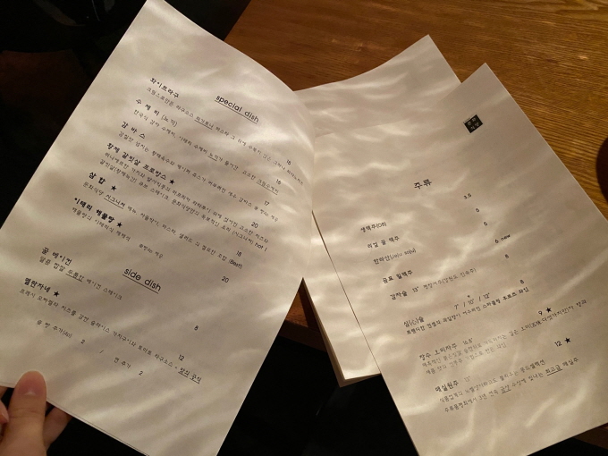 위에는 문화식당의 메뉴판. 평일 점심은 할인도 된다니, 이 점 참고하시면 좋을 것 같다. 우리는 주말 점심에 가서 그런 것은 없었지만 갈 수 있다면 평일 점심에 또 가고 싶은 마음. 이 식당의 메인은 삼합과 오무라이스. 두 메뉴에 모두 별표가 있었다. 다른 후기글에서도 이 두 메뉴를 많이 봤어서 우리는 그대로 주문했다.