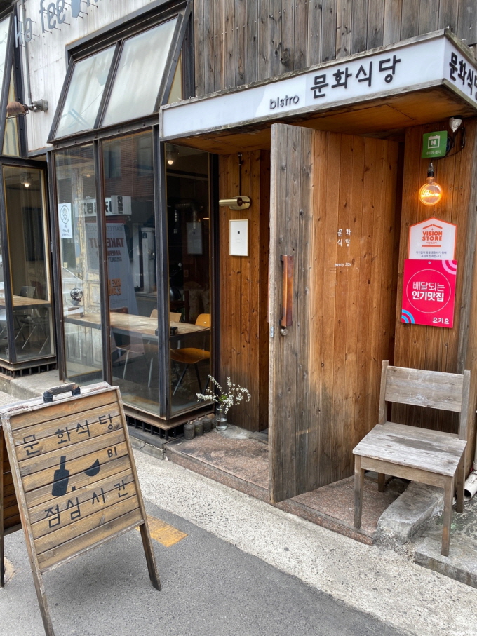 성신여대 근처에 볼 일과 함께 찾아본 근처 맛집! 요새 짝꿍이랑 자주 못만나서 그 짧은 시간, 맛있고 분위기 있는 식당을 가고 싶었다. 검색을 하다가 여러번 봤던 이 식당은, 분위기도 장난없어 보였다. 맛도 있다고 하고 사람들도 몇 번이나 찾는 그런 식당인 것 같아서 바로 예약완료. 가는 데 차가 조금 막혀서 택시를 탔는데도 한 10분 정도 늦었다. 가는 길에 전화드렸는데 다행히 자리세팅 미리 해주신다고 한 친절한 사장님. 택시에서 바로 내려 들어가는 입구부터 장난 없던 이 곳. 오늘 포스팅할 곳은 성신여대 맛집, 비스트로 문화식당이다.