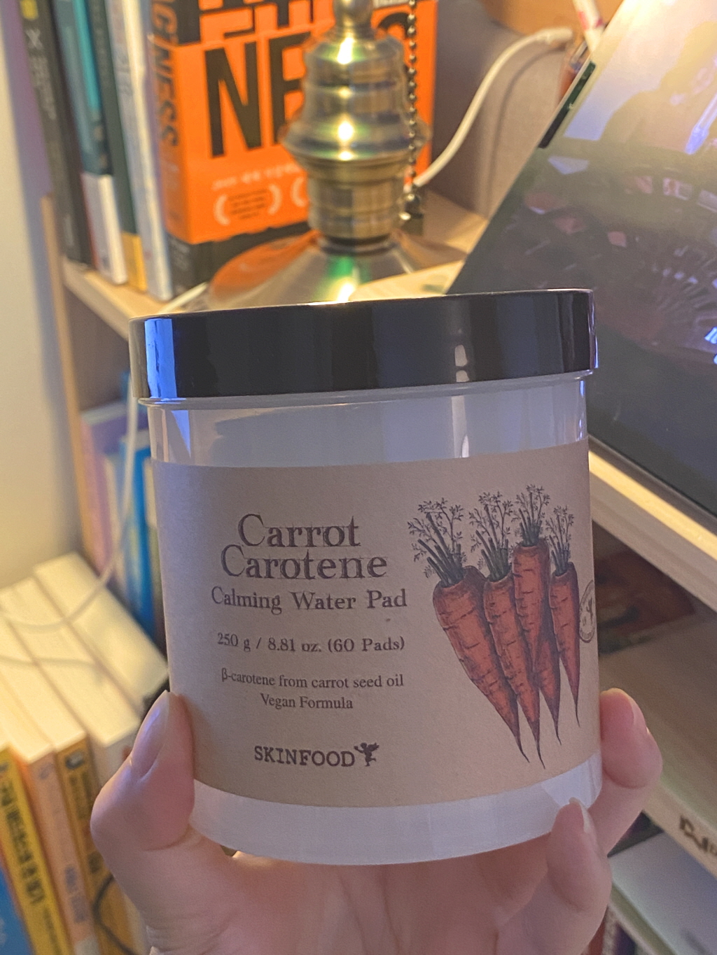 그것은 바로 스킨푸드의 캐롯 카로틴 카밍 워터 패드. 지난 12월 초 올리브영 세일기간에 구매했는데 다 사용하고 오늘 우연히 올리브영 들렀다가 할인하길래 한 통 더 데려왔다.