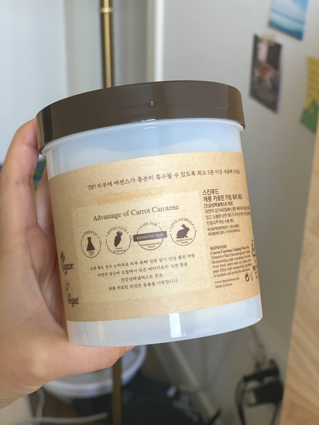 캐롯 카로틴 카밍 워터 패드를 머리 말리거나 딴 거하면서 5분 정도 얼굴에 붙였다 떼면 피부가 싹- 시원해지는 느낌. 이 단계를 제대로 거치냐 안 거치냐에 따라 화장이 잘 먹는 게 정말 달라짐을 알 수 있었다.