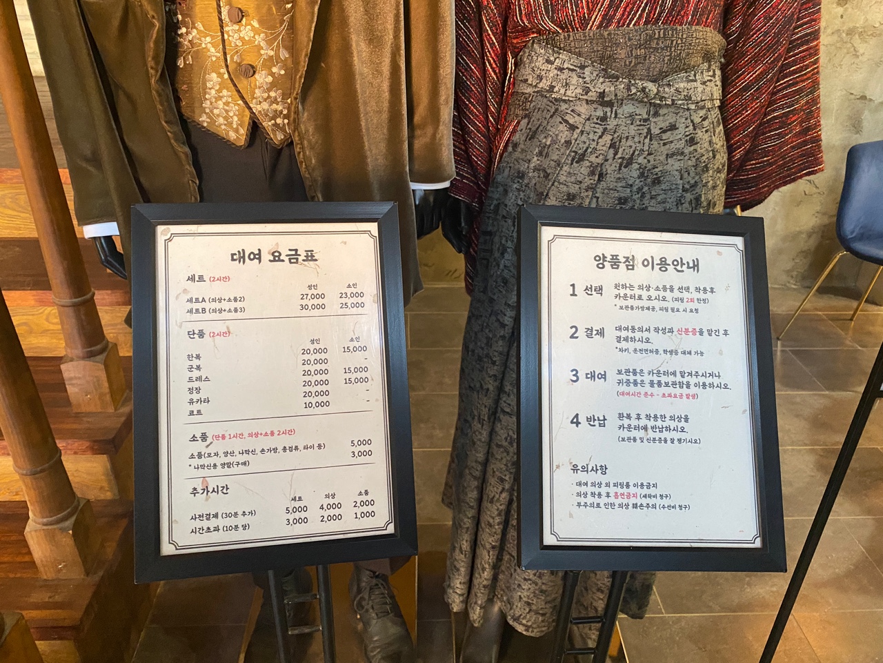 개화기 의상을 대여할 수 있는 양품점도 이쪽에 위치하고 있는데요. 대략 2~3만원 선에서 대여할 수 있더라구요.