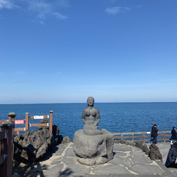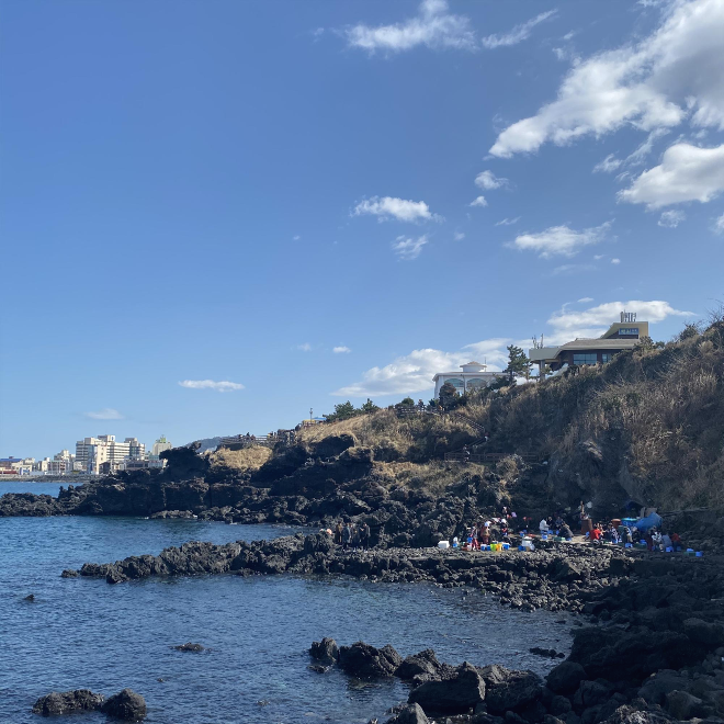 공항에 동생을 픽업하러 가기 전 시간이 남았다. 어딜갈까 지도를 보다가 용두암 발견. 이름은 많이 들어봤지만 가본적은 없었는데 엄마아빠가 가자고 해서 갔다. 용두암. 석상이 있는 쪽에서 바다를 바라보다가 좀 더 산책을 하자길래 계단을 따라 내려가서 바위를 따라 걸으니 모퉁이를 돌자마자 새로운 풍경 등장. 해녀분들이 그곳에서 회를 팔고 계셨다. 앉아서 소규모로 먹을 수 있는 자리도 있었는데 난 낯설은 풍경에 그냥 가려고 했더니, 엄마가 붙잡았다. 응? 엄마가 이렇게 도전적인 사람이었나? 먹자고 하니 자리에 앉았는데, 구경하는 거랑 내가 그 그림에 앉아있는거랑은 정말 다른 위치였다. 그곳에 앉아있자니 왠지 여유가 생기고 이런걸 즐길 수 있는 내가 플렉스한 느낌(뭔 소리야). 암튼 좋았다. 회는 비쌌지만, 바다를 즐기며 새로운 경험을 만끽하고 싶다면 추-쳔! 근데 날씨 좋은 날 한정으로…(우린 날좋은날 갔기에)