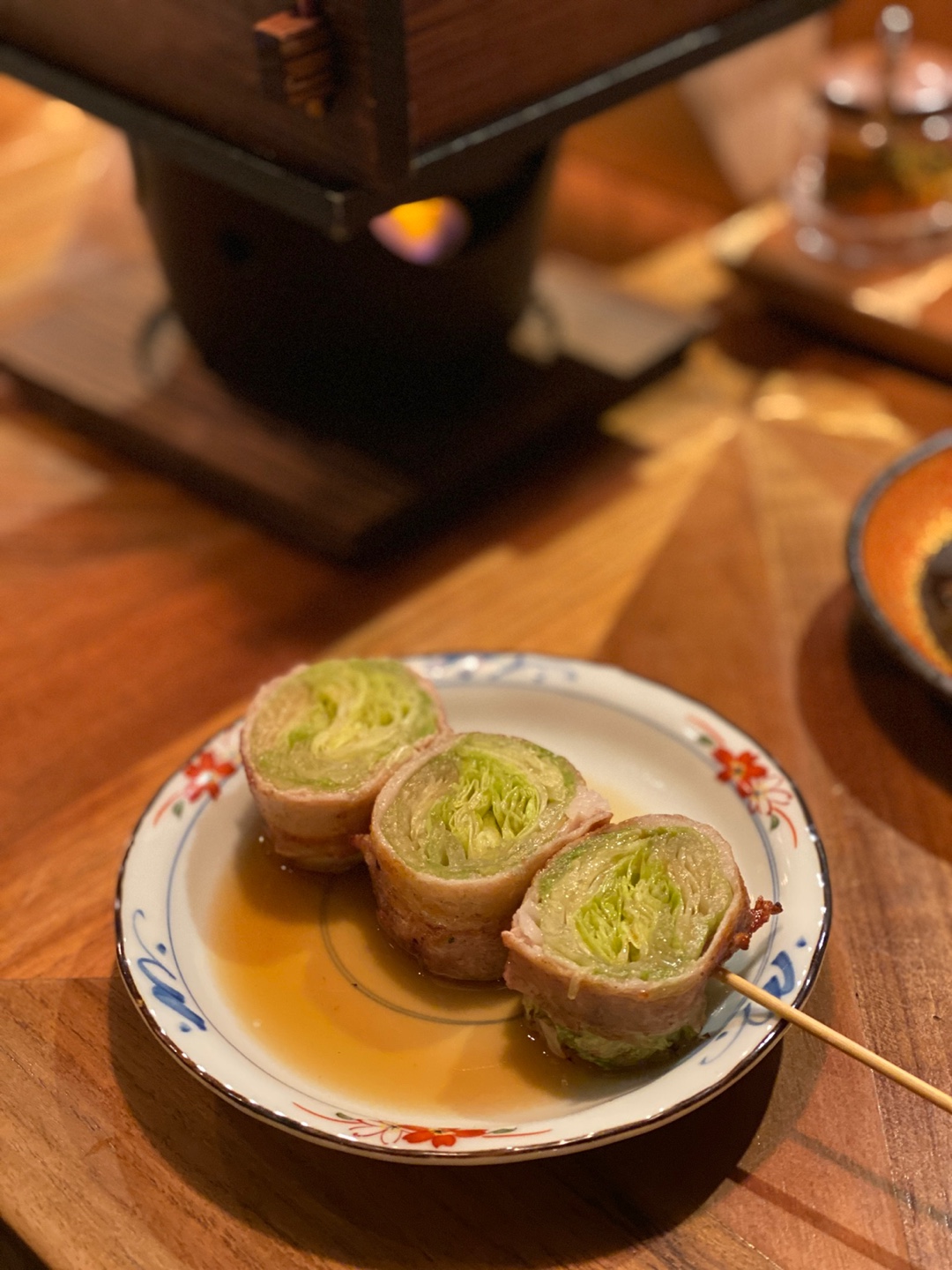 버섯(이었던 것 같다)꼬치랑 베스트 중 하나인 양배추 베이컨말이!
